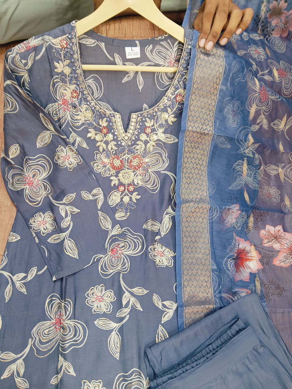 That sounds like you are interested in a Kurti, Pant, and Dupatta set from the brand Agoka!