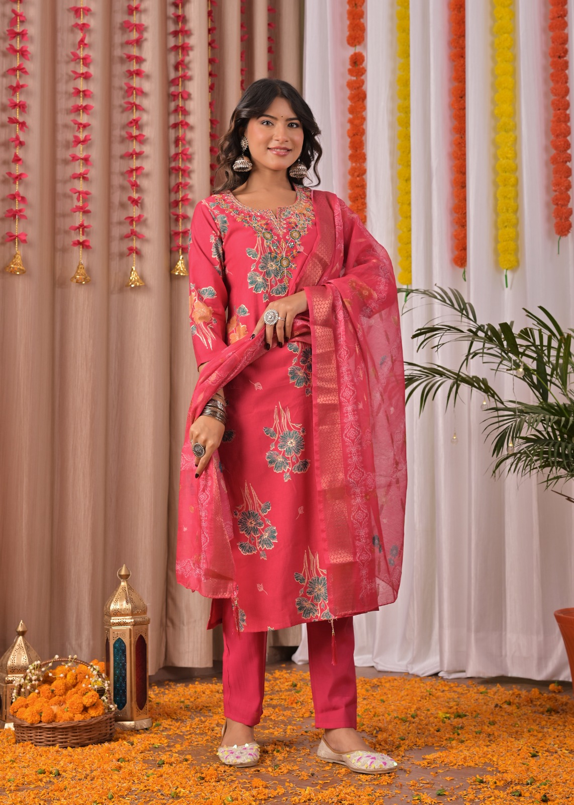 That sounds like you are interested in a Kurti, Pant, and Dupatta set from the brand Agoka!